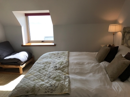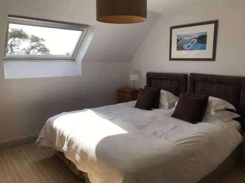 A SPACIOUS LUXURY ROOM WITH A SUPER KING SIZE BED AND EN SUITE SHOWER ROOM, A SEPARATE SITTING AREA OVER LOOKING THE SHORE. THIS ROOM IS ON THE GROUND FLOOR.